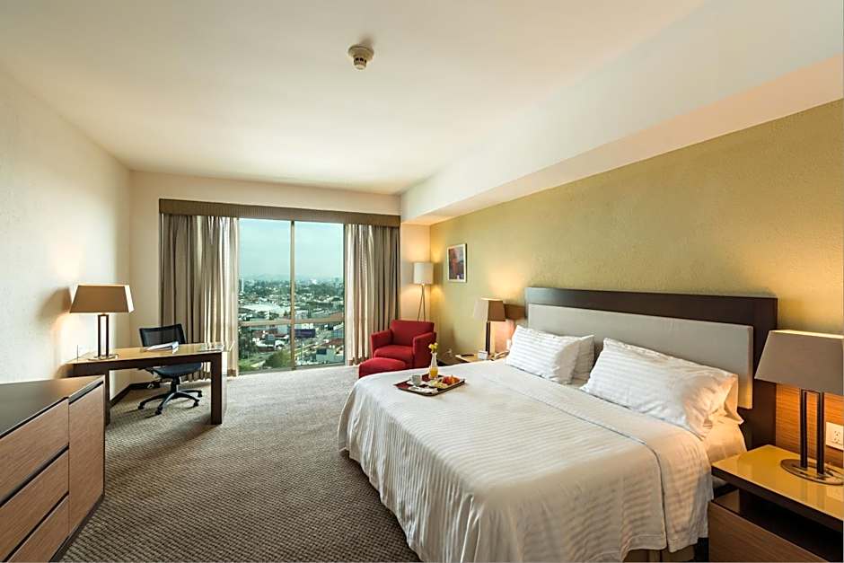 The hotel also features a bar and restaurant, providing delicious meals and refreshing drinks just steps away from your room. If you need assistance or have any special requests, the 24-hour front desk is always ready to assist you. With comfortable rooms and a prime location, the Holiday Inn Guadalajara Select is the perfect choice for your stay in Guadalajara.